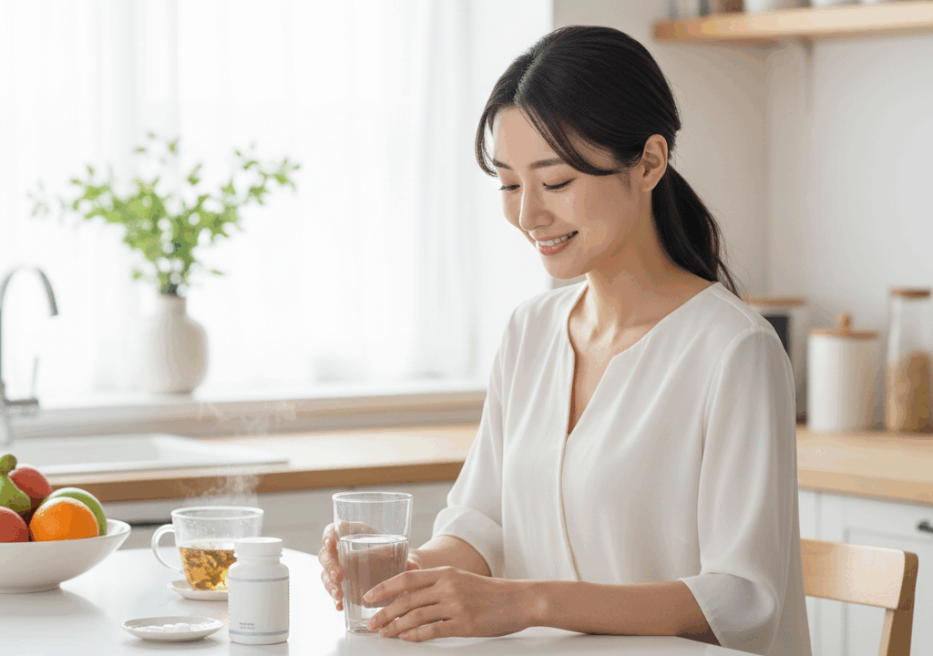 サプリメントは、効果を最大限に引き出すために水またはぬるま湯で服用することが基本